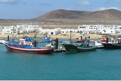 • Graciosa me fait penser aux petites iles autour de la Bretagne avec trois cents habitants et trois lieues de grève. L’ile de Sein serait sa jumelle si elle n’était pas si près de Brest, si elle n’était pas voisine d’Ouessant, si elle n’était pas à l’entrée à la fois du goulet d’une grande rade et du chenal du four, si elle avait une marina propre à accueillir, sans danger, une vingtaine de voiliers visiteurs. Là où elle est placée, face au Raz de Sein et au phare de la Vieille, cela n’a rien à voir avec la tranquillité des eaux de l’ile de La Graciosa. Elle est rattachée à l’ile voisine de Lanzarote qui n’a pourtant pas les mêmes composants géologiques, mis à part qu’il s’agit aussi d’un terrain volcanique. Il n’y a guère que l’industrie du tourisme qui la fait vivre ainsi que des groupes de retraités qui sont venus s’y installer tant la vie est plaisante au milieu d’une nature qui ne l’est pas moins et d’un coup de navette, en une demie heure, on se sent déjà bien ailleurs ! L’ile de La Graciosa, la bien nommée : accueillante,  fascinante, est comme une perle de l’océan, au bout de l’ile de Lanzarote ! Comme un point sur un i, comme une des iles… bretonnes, comme un charme qu’elle distille, dans sa blancheur… immaculée. Point de superflu ni de fioriture : rien que de l’authenticité. Les autochtones sont sages et leurs plages sont bonnes. Un bel oasis en mer où tout, auparavant, était désert.  Un fruit juteux, et savoureux comme un dessert qu’on peine à quitter, sans un soupir, sans un regret.  Le village principal de l’île est Caleta de Sebo  et comptait 693 habitants en janvier 2008  vivant de la pêche et du tourisme. Un seul village et la même population que notre Ile-Grande : fantastique ! Un village pas comme les autres, avec rues ensablées et aux toits plats : pas d’eau, pas d’électricité, en local : tout est importé, transporté de Lanzarote, y compris les denrées du magasin : l’hiver est en vrai désert. Ce qui m’a frappé le plus n’est pas le port mais la blancheur immaculée des maisons, toutes carrées et resserrées pour se protéger.