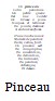 - Symbolique de forme : Un pinceau, du Latin peniculus ou petite queue, est une variété de brosse à poils souples terminée en pointe, destinée à enduire, des surfaces, d’une couche de mince matière de peinture, d’encre, de vernis, de fard. Un pinceau sert en calligraphie, en illustration, en décoration, en bâtiment, en peinture artistique et en dessin. Wikipédia